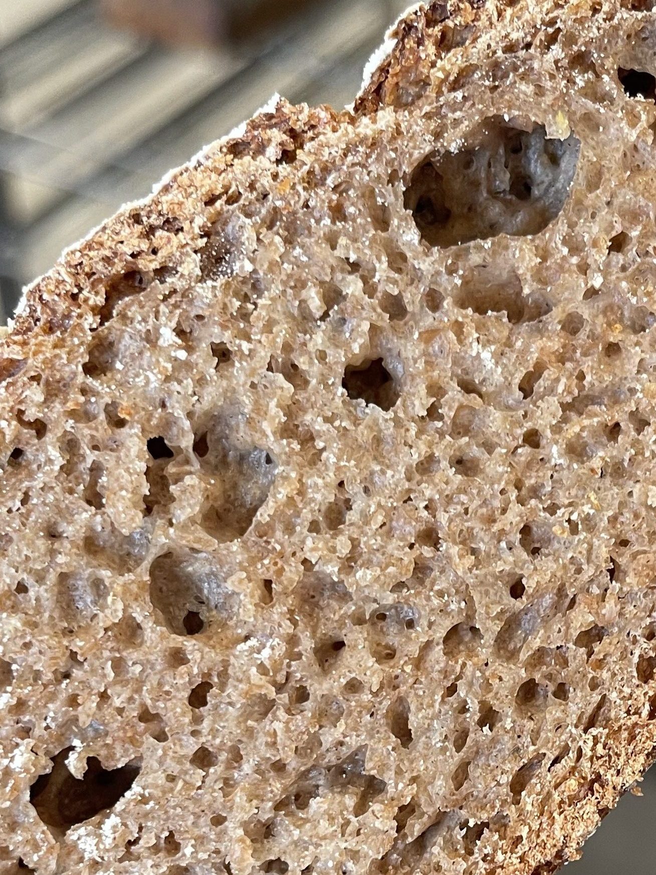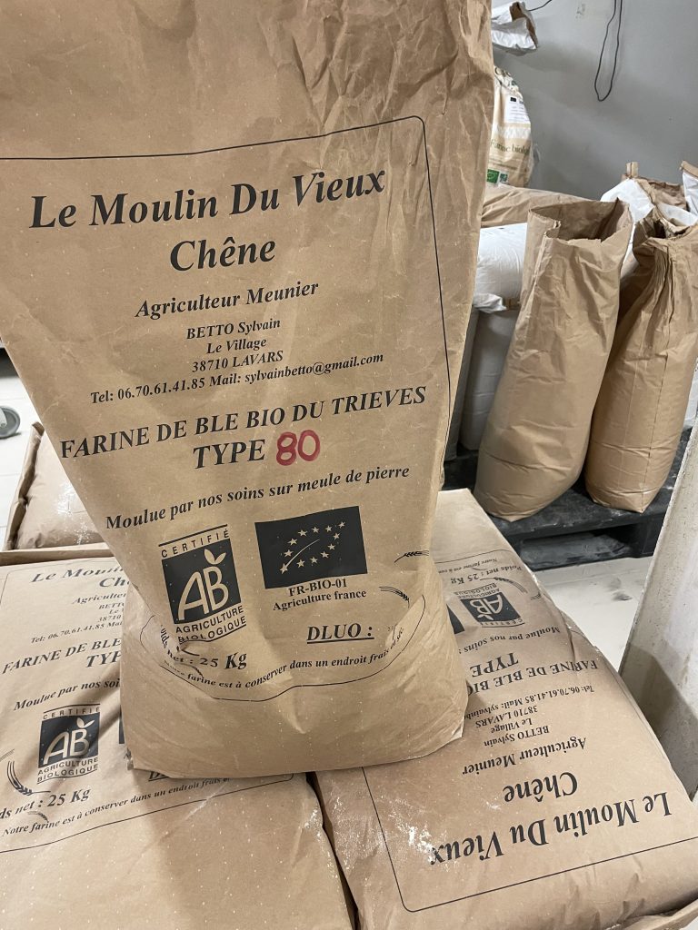 Au Moulin du Vieux Chêne, on n’a pas non plus supplémenté la farine qui compose le Très Très Local et le Trièves en gluten. Et pour les amoureux·ses du pain que nous sommes, elle met à l’épreuve nos qualités d’observateur·ices et notre “touché” de pâte. Chaque lot est différent, certains absorbent l’eau sans fin tandis que d’autres n’ont pas soif. A nous de trouver le juste équilibre pour sublimer cette farine à chaque nouveau sac !
