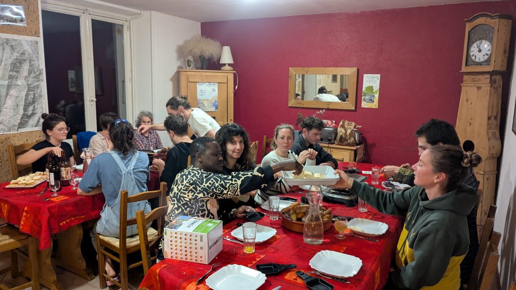 Les journées de production ne laissent pas la place à des réunions suffisamment longues. Alors depuis un an, nous avons dû mettre en place un calendrier de réunions du soir. Une fois par mois, nous nous réunissons de 18h30 à 20h pour traiter de sujets qui ne peuvent être survolés. Cela peut être la présentation d’un SIG (solde intermédiaire de gestion) par le rôle finance. Cela peut être une réflexion lancée sur les primes ou encore sur le droit d’objection durant les réunions (qui pour l’instant ne concerne que celleux qui ont fait une formation à la gouvernance). Cela peut être une discussion concernant l’engagement de prendre un nouvel apprenti à la rentrée prochaine. Les sujets ne manquent jamais ! Mais ce n’est pas simple de se motiver à rester tard après une journée au fournil ou revenir sur une soirée. Et en même temps, à chaque fois nous en sortons heureux·ses de voir le chantier avancer. Le besoin de se voir plus, c’est ce qui a aussi motivé l’idée de partir en séminaire cet automne. Alors les 30 et 31 octobre, nous avons fermé la boulangerie et nous nous sommes téléporté·es (certain·es à vélo, d’autres en covoiturage) dans le Vercors, à Rencurel.
