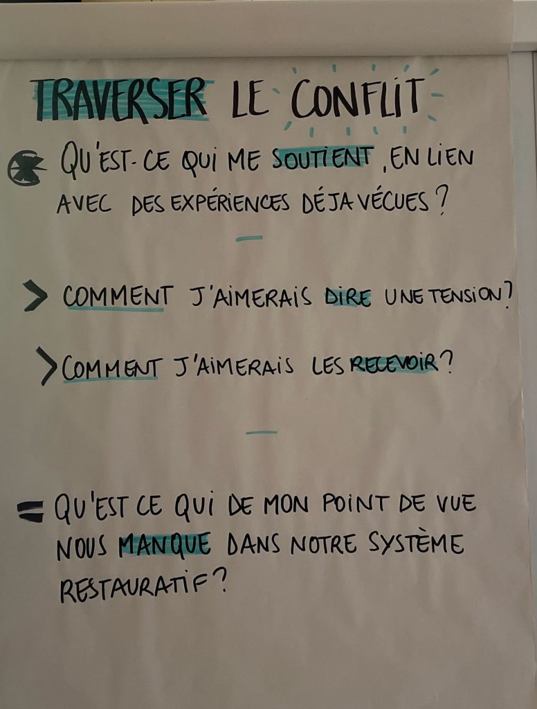 Que nous manque-t-il aujourd’hui ? Un lieu confidentiel, une habitude aux feedbacks, une réflexion collective sur les oppressions et les privilèges, un rôle partagé qui soit une oreille attentive et un·e garant·e des process restauratifs définis ensemble.