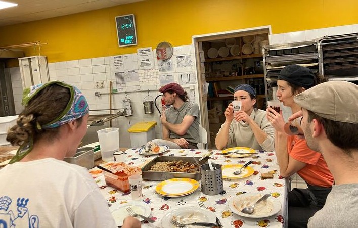 Au sein de ces espaces, nous posons chaque jour une petite pierre. Avec nos maladresses, nos peurs parfois, nos humeurs changeantes. Notre manque d’expertise aussi. Mais cette petite pierre est posée avec l’idée que rien n’est acquis, que tout est à faire évoluer sans cesse. Il n’y a pas de tabou du genre « ça a été créé comme cela il y a 8 ans, on ne change rien ». Au contraire : on s’empare d’un héritage dont nous avons toustes conscience et on le remodèle à la sauce 2026. Depuis que le Pain des Cairns est passé en SCOP en 2018 et a entamé des démarches pour fonctionner en gouvernance partagée (deux choses différentes, voir l’article Késascop), nous construisons des outils qui offrent un cadre enveloppant et libérant à la fois. Quels sont ces outils qui aident à la gouvernance partagée et au dialogue dans notre boulangerie ?